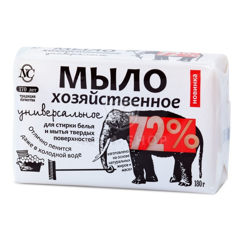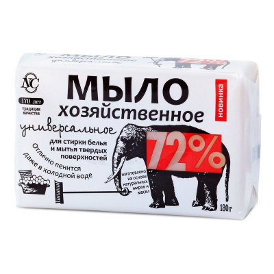 Хозяйственное мыло универсальное "72%" - классическое мыло, сваренное традиционным способом по старейшим рецептам. Изготовлено из натуральных компонентов и не содержит красителей и ароматизаторов. Обладает отличными моющими свойствами и обильной пеной, отлично отстирывает различные бытовые загрязнения. Не раздражает кожу рук, благодаря глицерину, увлажняющему, смягчающему и защищающему кожу от потери влаги. Идеально для стирки, мытья посуды и рук даже в холодной воде.