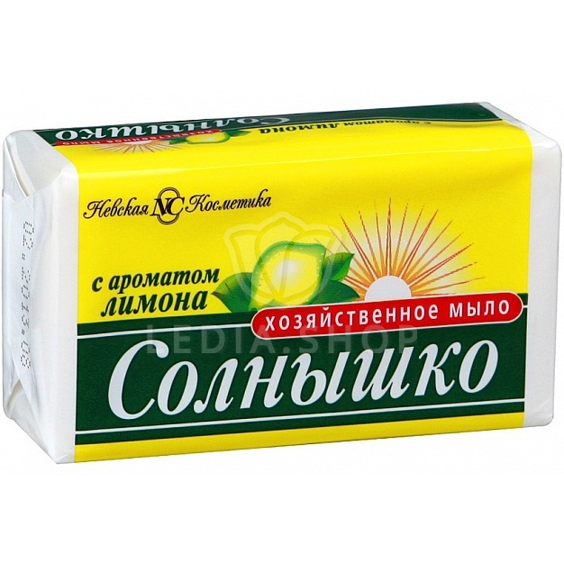 Хозяйственное мыло Солнышко с ароматом Лимона. Ароматное, эффективное мыло очищает, образует пышную пену даже в жесткой воде. Изготовлено из НАТУРАЛЬНОГО сырья высочайшего качества. Мыло подходит для замачивания, стирки, мытья рук и посуды. Не сушит и не раздражает.