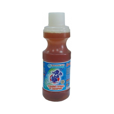 Жидкое средство для устранения засоров в канализационных стоках. Очищает трубы от органических загрязнений, остатков пищи, жира, волос, бумаги и пр. Содержит щелочи, которые активно разрушают белковые вещества, устраняют запахи. Не повреждает пластиковые трубы, легко смывается водой.