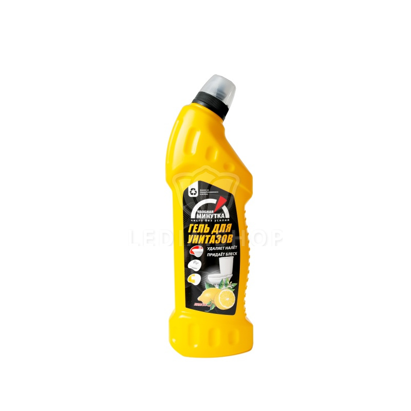 Гель на основе лимонной кислоты — очищает загрязнения, удаляет налет и ржавчину, мочевой камень, следы плесени и грибка, надолго удаляет неприятные запахи, придает поверхностям блеск и оставляет защитный слой, препятствующий размножению бактерий и последующим загрязнениям. Идеально подходит для чистки фарфорового, фаянсового и керамического оборудования ванных и туалетных комнат: унитазов, биде, кафеля.